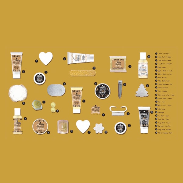 Ce calendrier de l’Avent contient au total 24 produits de beauté, notamment des soins de peau et des produits pour le bain :